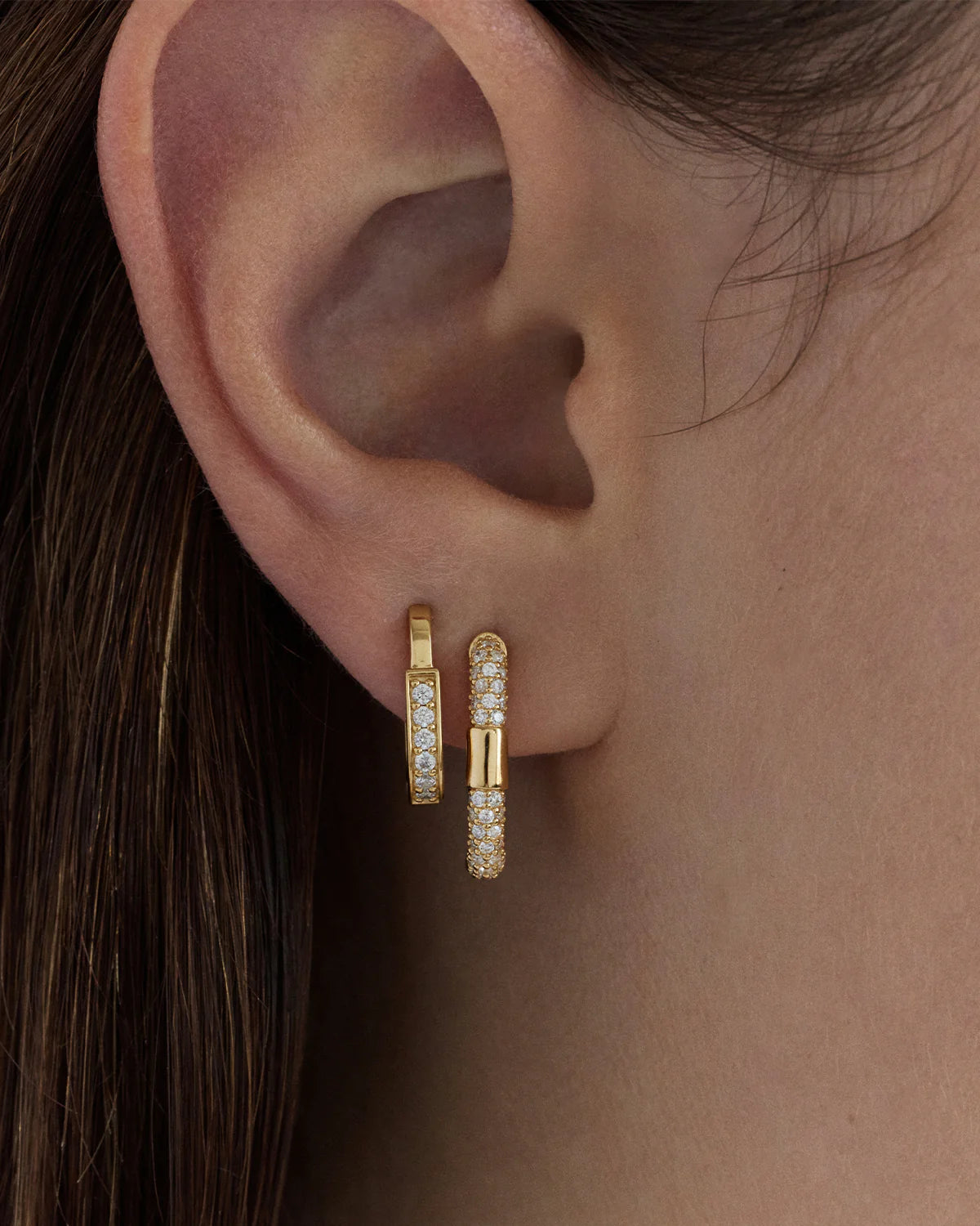 The 18k Gold Vermeil Unlock Your Potential Hoops are a radiant symbol of the limitless potential within. With their elegant design, they serve as a reminder to embrace your personal power and unlock the possibilities that lie ahead. These modern hardware-inspired earrings feature a subtle bolt detailing and cubic zirconias in a pavé setting.