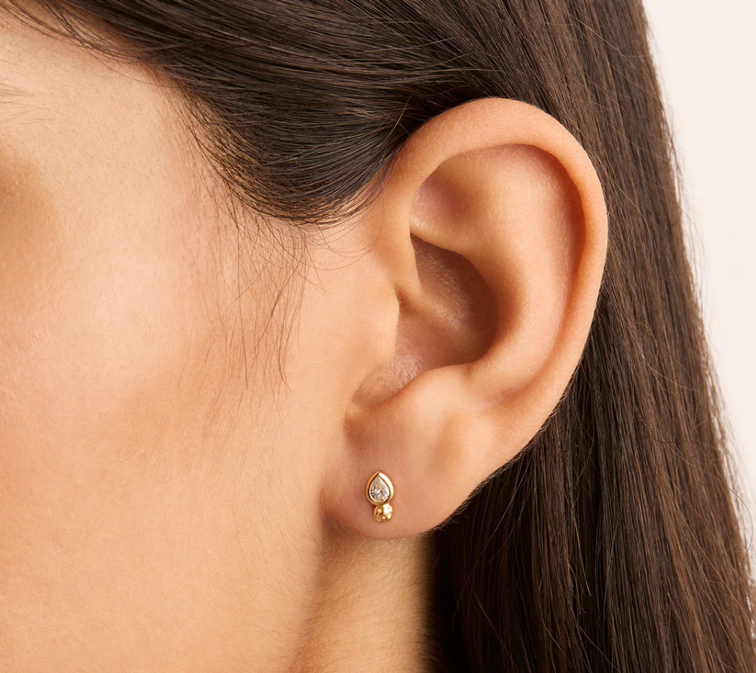 Let love guide your path to enlightenment with our Adore You Stud Earrings. These delicate crystal studs abstractly capture the essence of the heart symbol through sparkling, faceted pear-cut crystals in a bezel setting. These earrings are a by charlotte signature staple for magical ear curation.