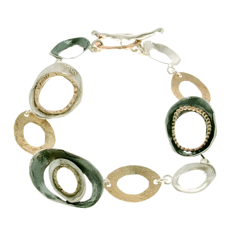 BRACELET GOLD FILLED AND SILVER OVAL DETAIL