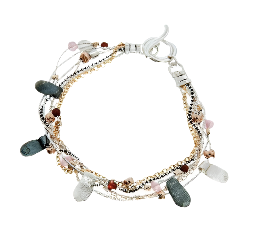 Bespoke 9ct Yellow, Rose Gold, Silver bracelet with garnet and rose quartz detail - hand made in Israel.