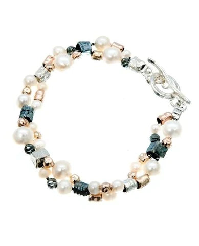 Bespoke 9ct Yellow golf filled, Rose Gold filled , and Silver bracelet with pearls hand made in Israel.
