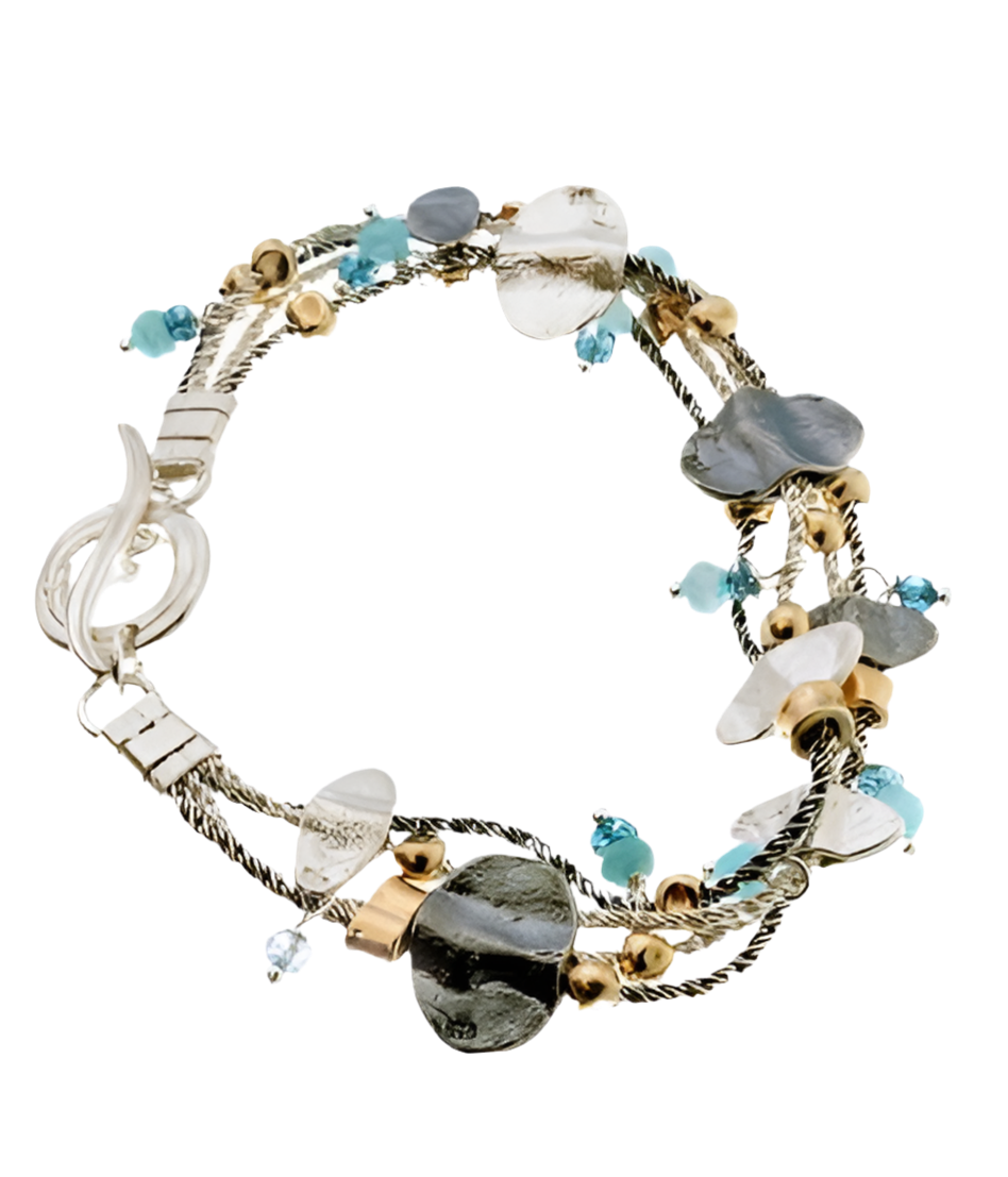 Bespoke 9ct Yellow , Rose Gold and Silver bracelet hand made in Israel. Blue topaz and opal
