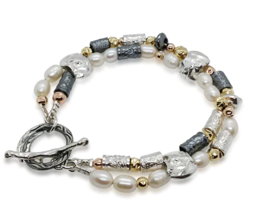 Sterling Silver, Gold Filled, Pearl bracelet with oxidised beads