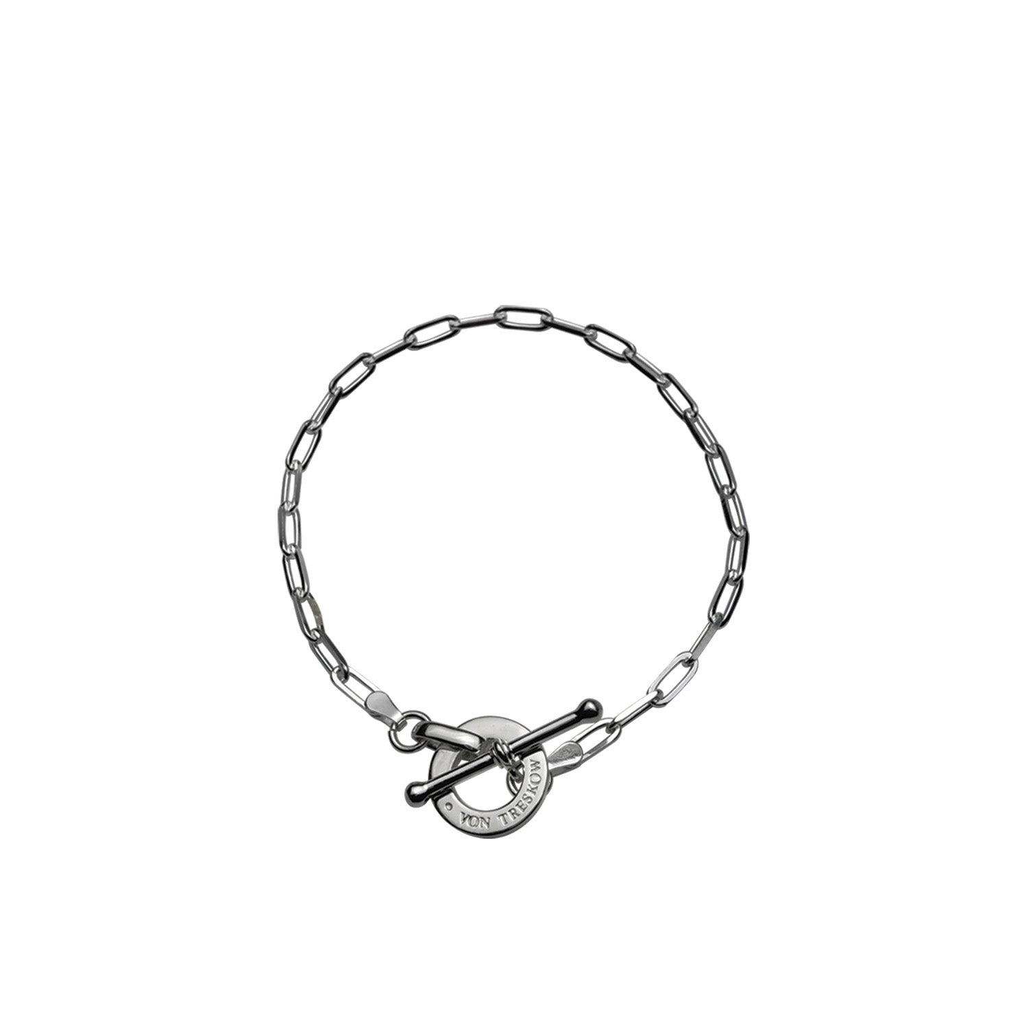 Clip chain bracelet with Von Treskow Disc toggle. Von Treskow’s clip chain features links resembling a paper clip.