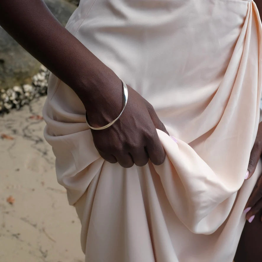 This exquisite sculptural bangle is handcrafted from a single, undulating hollow ribbon. Representing infinity, she’s the bangle of choice for lovers of bold, minimalist style. Making a statement on her own, The Garden of Eden Bangle maintains her organic beauty when stacked, especially with her different precious finishes.