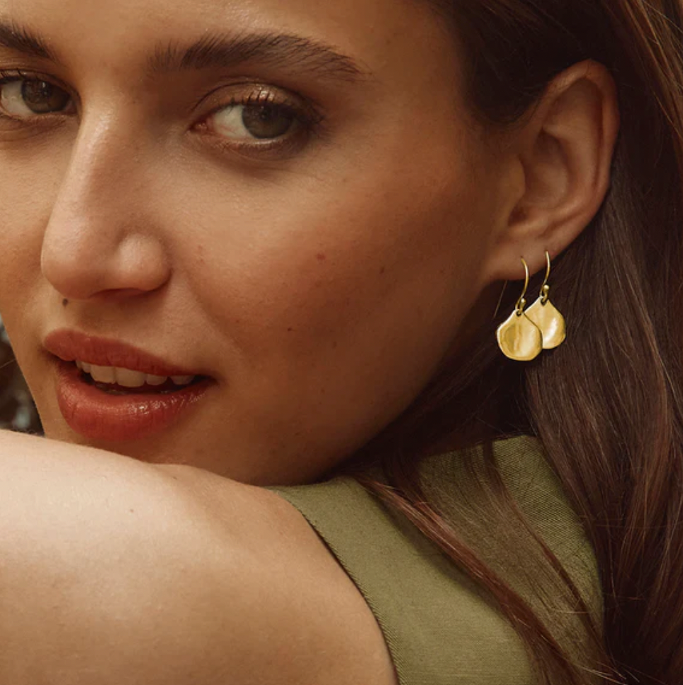 A nostalgic piece from designer Susannah Fairley who from the age of 6 began collecting shells and other trinkets from all over the world to create jewellery. These hook earrings are lightweight and showcase a broken gold shell. A classic pair of earrings that can be worn day into night all year round.