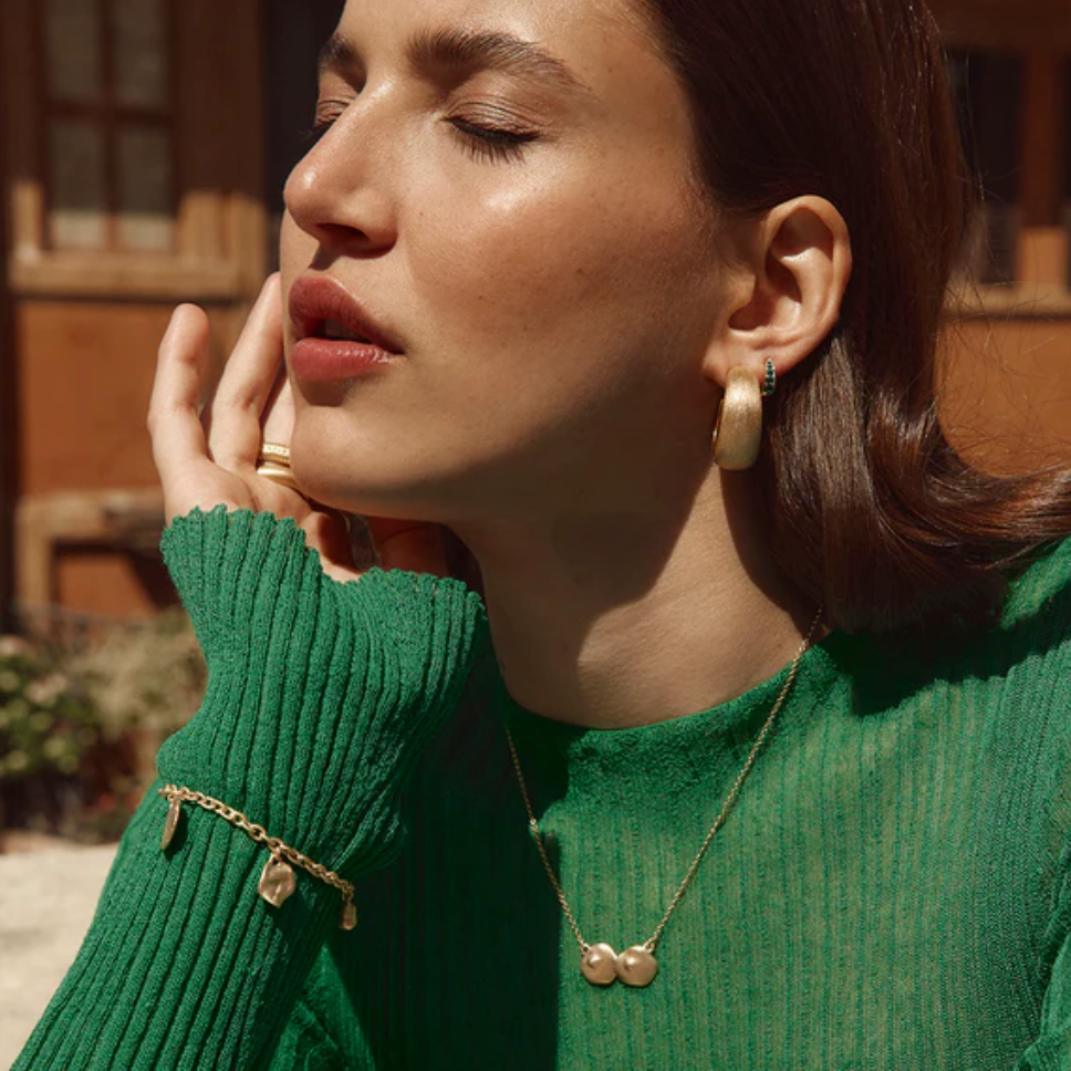 A nostalgic piece from designer Susannah Fairley who from the age of 6 began collecting trinkets from all over the world to create jewellery. This charm bracelet showcases such trinkets such as a cast pearl, ancient coin and broken shell. A meaningful statement bracelet for the luxe traveller.