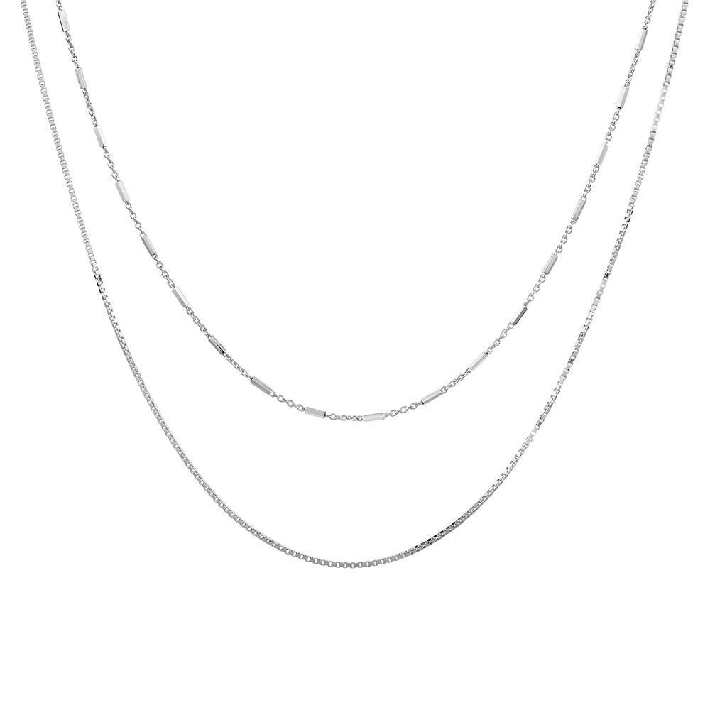 Sterling silver tiered double necklace – fine cable chain with solid links and box link chain
