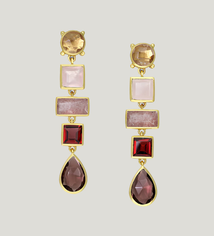 Adorn yourself with the magic of the 'Celestial Cascade Earrings'. These exquisite earrings feature a radiant arrangement of gemstones, each sparkling with its unique charm. From the sunlit glow of the top to the captivating depths of the teardrop, these earrings capture the essence of ethereal beauty. A symphony of colour and light, they are a statement of elegance and grace
