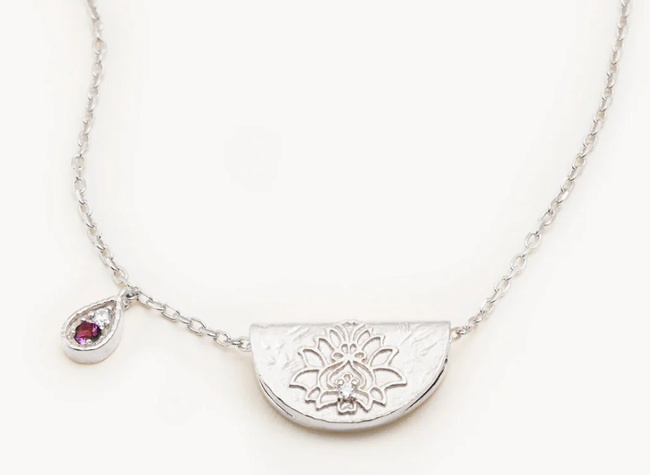 SILVER LOTUS BIRTHSTONE NECKLACE - FEBRUARY