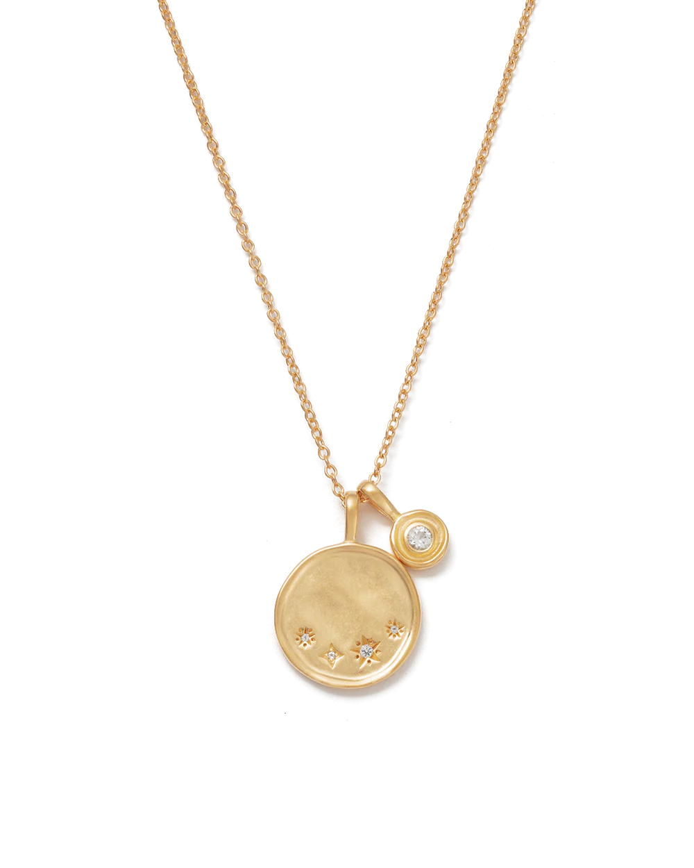 A defining turning point, the Solstice Necklace features a cluster of white topaz stones set against a round pendant, paired with a white topaz pendant