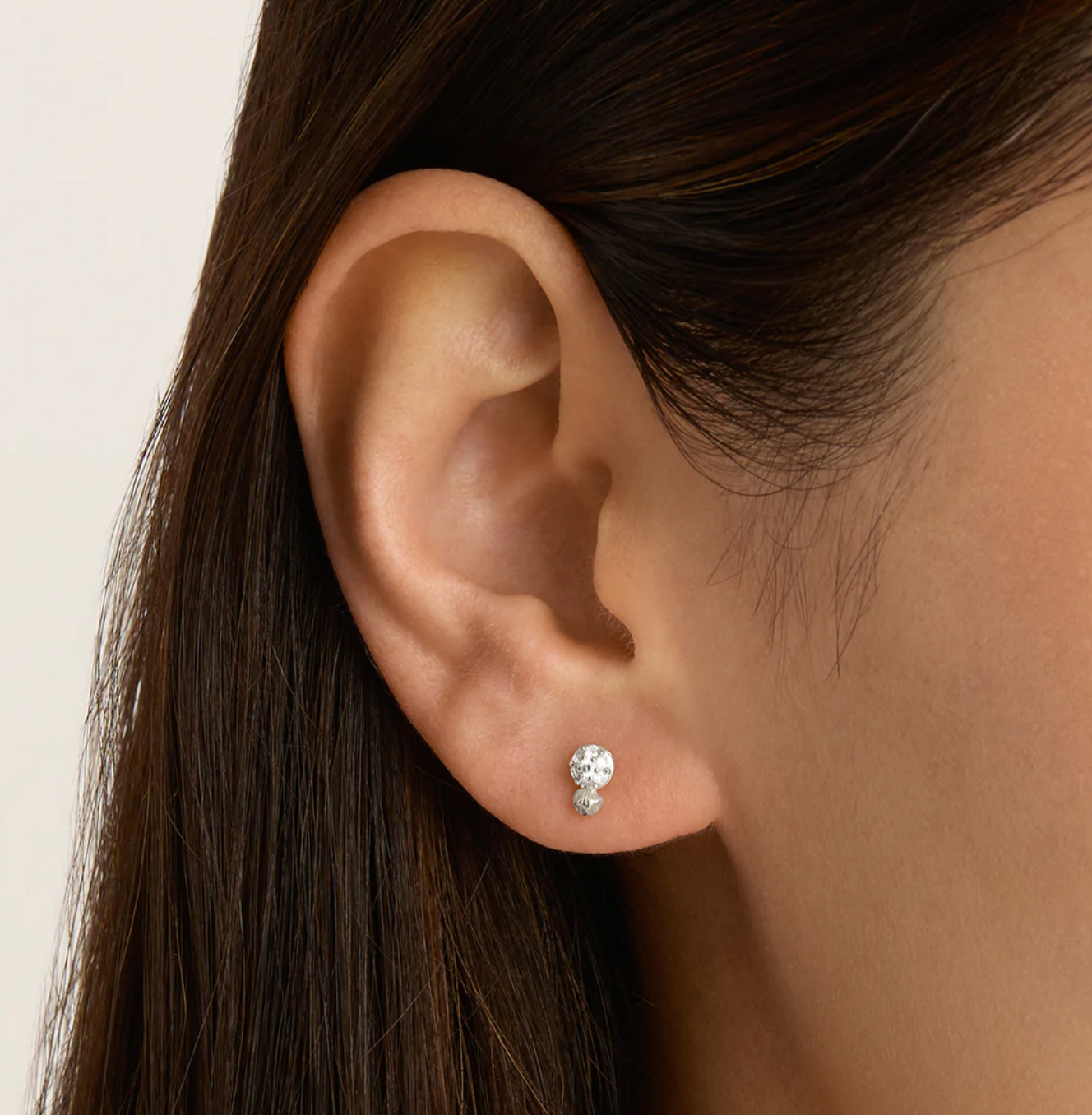 A twist on the everyday staple stud, our dainty Sterling Silver Stardust Soul Stud Earrings feature pavé set cubic zirconias and a textured finish. These earrings are our everyday staple; a timeless addition to your jewellery collection.