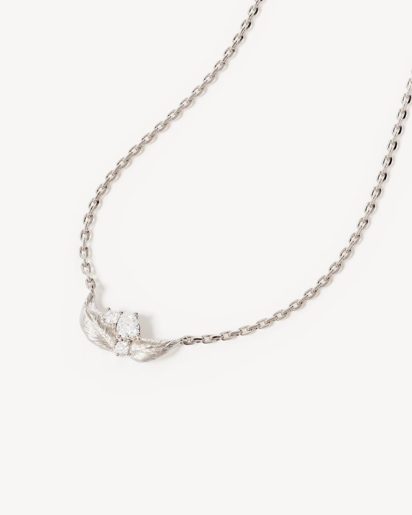 The Through The Seasons Necklace is inspired by the changing seasons - a time of renewal, hope and transformation - using leaves as symbolic talismans. This design speaks to the dewdrops on leaves - elevated with sparkling crystals.