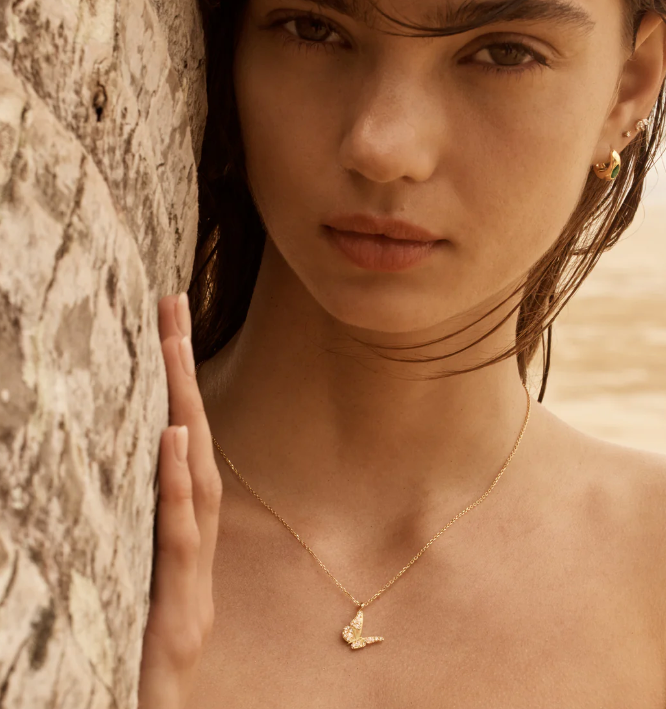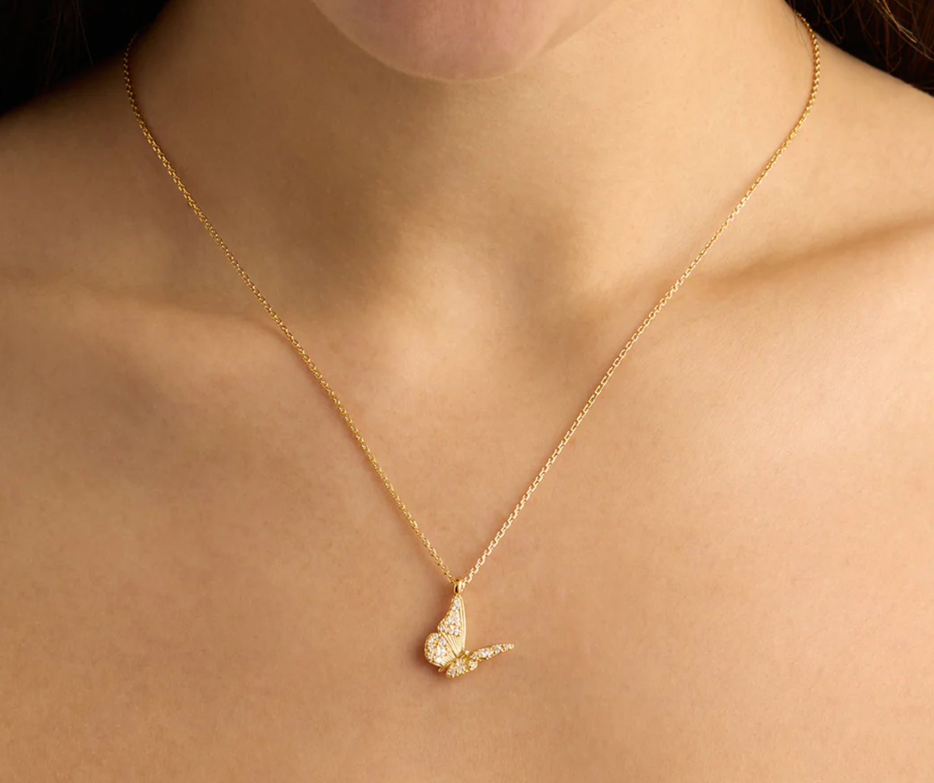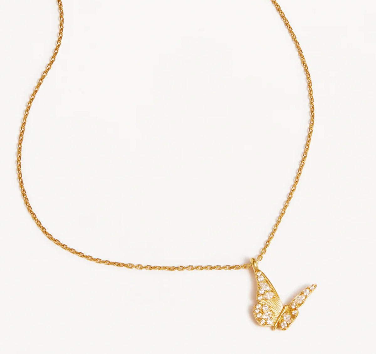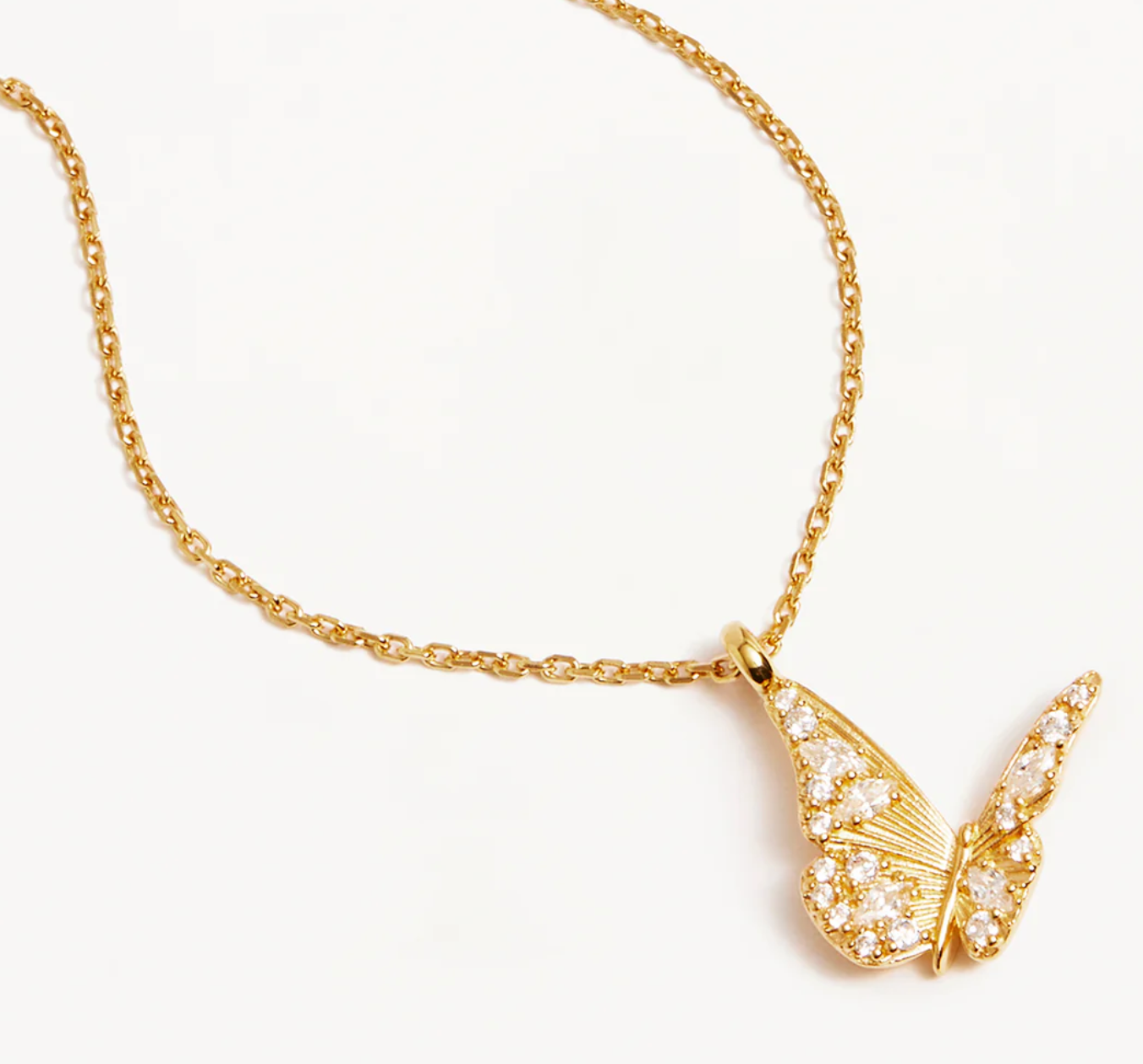 Capture the essence of love with our 18k Gold Vermeil Wanderlust Necklace, encrusted with round and marquise cut crystals scattered in a sparkling winged design. Set on our signature diamond cut cable chain, the butterfly, in its silent grace, is a reminder to radiate warmth, love and quiet confidence from the inside out. Style this pendant-style necklace with our collection of meaningful chains and chokers.